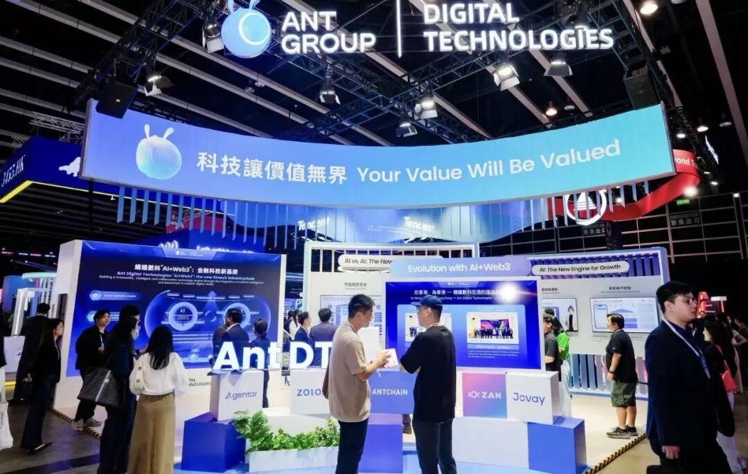 众多金融科技巨头齐聚香港,面向全球展出了各自的看家本领:蚂蚁数科展出了全场景AI升级解决方案,其中智能体平台Agentar、安全风控平台ZOLOZ以及AI手机银行等应用方案等备受关注;腾讯、华为等企业通过灯箱展示、现场演示等形式,呈现各自AI技术成果。